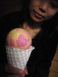 ストロベリーアイスかと思ったらフェルトボールですか。