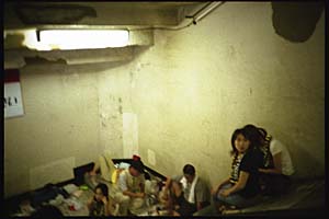 観客席へ向かう階段は、収容所の様相を呈していた。