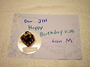 Mが手作りのケーキ(型ビーズ)で祝ってくれた。